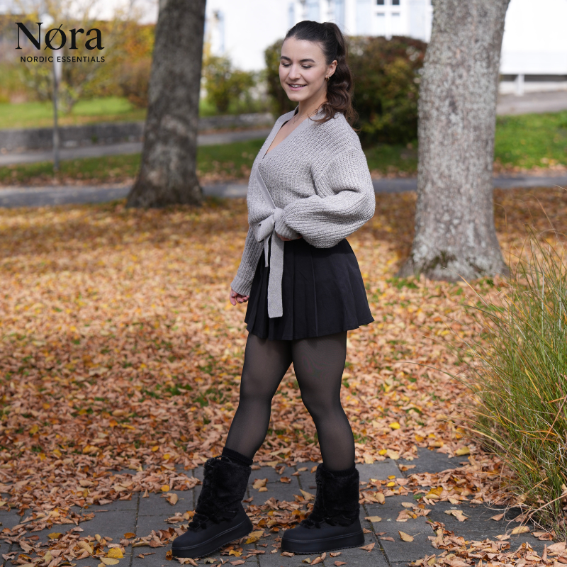 Mit ihrer edlen Optik vereint die Nøra Vinter Thermostrumpfhose die Leichtigkeit einer Feinstrumpfhose mit der Funktionalität einer Thermo-Leggings. Ob unter einem Kleid, kombiniert mit eleganten Boots oder als stilvolle Winterhose getragen – sie fügt sich nahtlos in jede Garderobe ein.